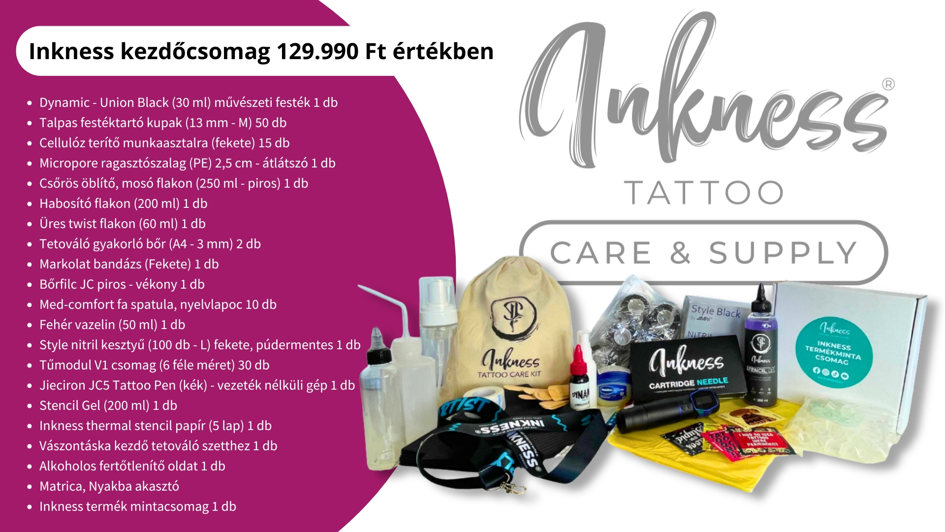 Az ár mindkét esetben tartalmazza a 129.990 Ft értékű Inkness Tattoo kezdőcsomagot melyet a képre kattintva tekinthetsz meg!