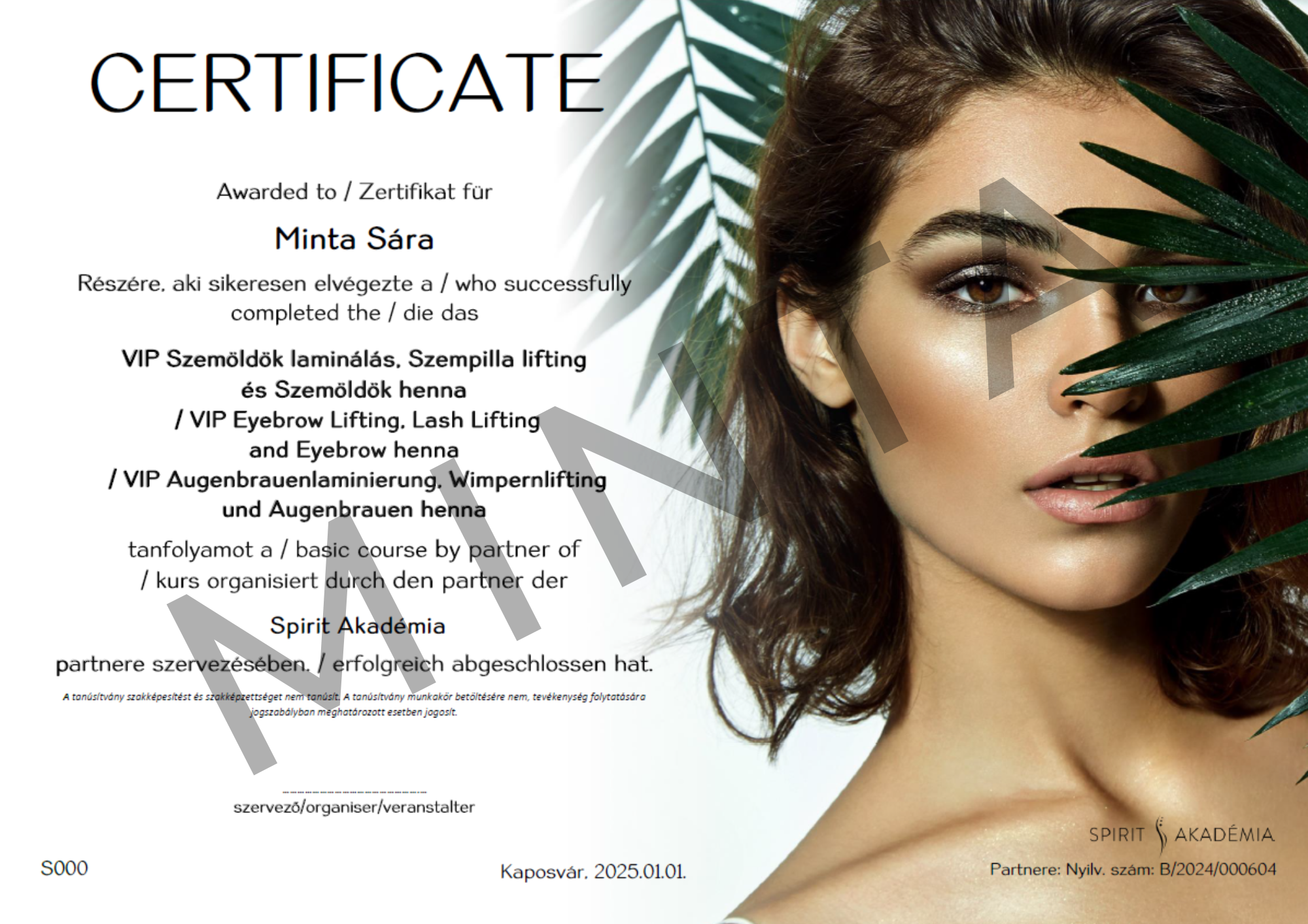 VIP szemöldök laminálás tanfolyam + szempilla lifting és szemöldök henna képzésünket egyéni vállalkozó partnerünk szervezi.
